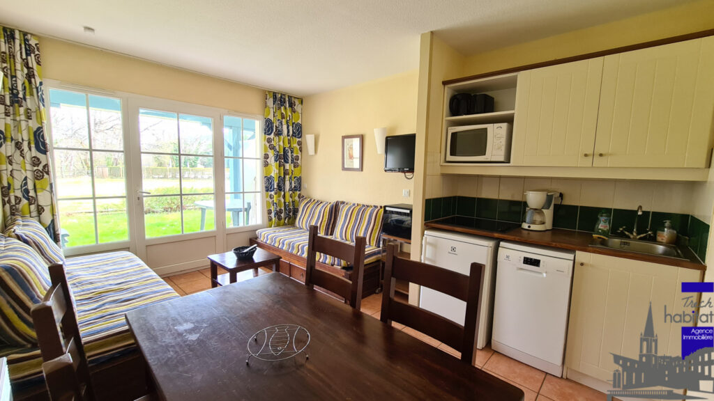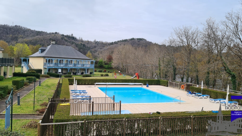 Au bord de la dordogne, dans un cadre idyllique, appartement de type 2 avec terrasse dans une superbe résidence de tourisme avec piscine chauffée, aire de jeux et parc arboré et fleuri.