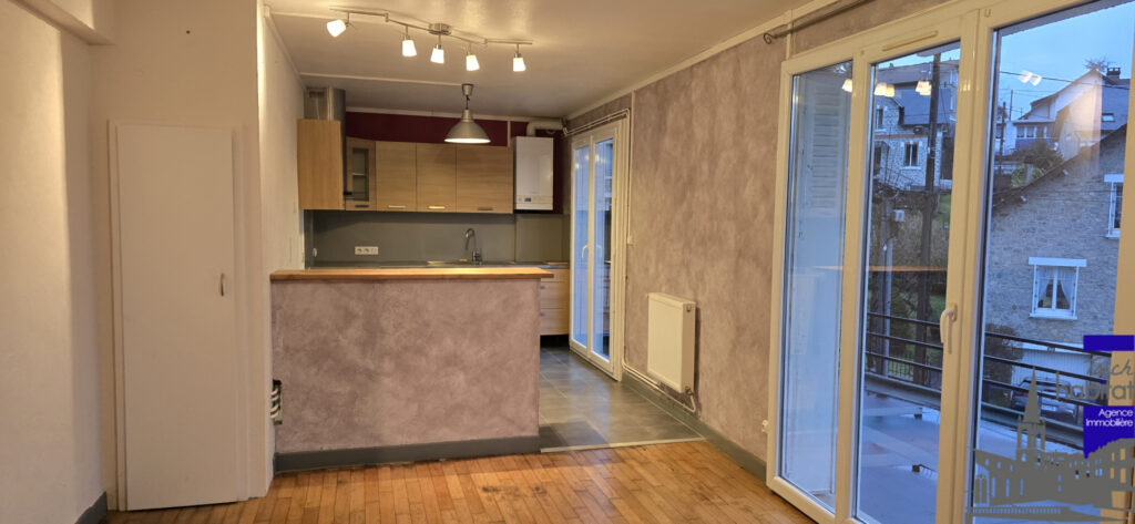 Trés bel appartement, lumineux et fonctionnel, situé au premier étage d’une petite copropriété.Grande pièce de vie avec espace cuisine aménagé et équipé d’une cuisinière gaz avec four et hôte, accès immédiat à la grande terrasse privative de 50 m2.Une chambre, un dressing aménagé, une salle d’eau avec fenêtre, un wc avec fenêtre.Chauffage individuel gaz de ville.Compteur d’eau individuel.Idéalement situé, à 2 pas du lycée Edmond Perrier, du quartier du Trech , de l’hopital, de la préfecture.Stationnement gratuit dans la rue.Libre.