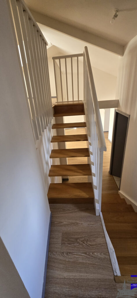 Ce bel appartement de type 3 de 82 m2 bénéficiant d’un ascenseur se compose d’une entrée avec placard penderie, d’une cuisine aménagée et équipée de plaque et hôte. Un séjour, wc, une chambre, puis un escalier menant à une deuxième chambre, une salle de bains avec douche et baignoire, et enfin une mezzanine offrant un espace interessant bien que fortement mansardé pour y faire un bureau ou un espace de jeux . Situé dans un immeuble en copropriété, en plein coeur du centre historique de Tulle, cet appartement bénéficie d’un emplacement privilégié, à proximité immédiate des commerces et services tout en étant au calme !Immeuble soumis au statut de la copropriété, géré par un syndic professionnel.Charges annuelles de copropriété s’élevant à 1100EUR dont 60EUR de fonds ALUR comprenant les charges générales, l’eau froide.