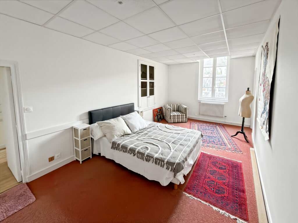 Il est composé au deuxième étage d’un salon/salle-à-manger, deux chambres, un bureau, une cuisine aménagée et équipée, un dressing, une salle d’eau et un cabinet d’aisance.