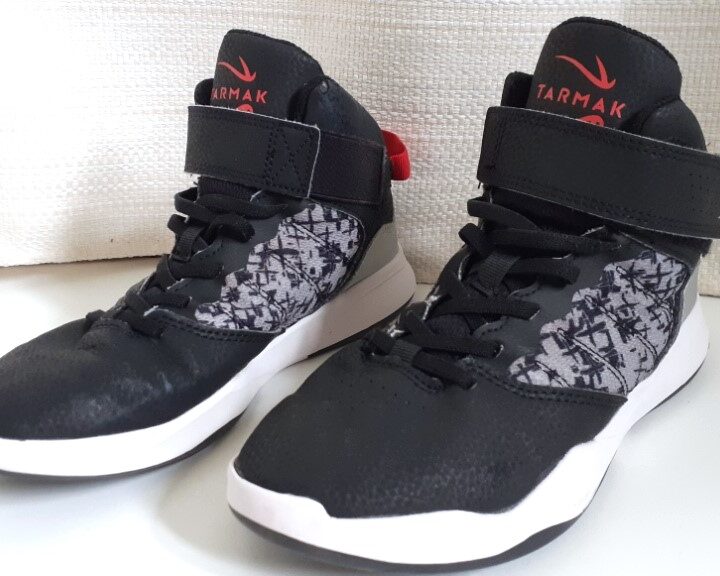 Baskets taille 37. Pour fille ou garçon. Ont été portées mais sont propres et en très bon état. Marque Tarmak Décathlon. Facile à enfiler avec système d’élastiques et de scratch, pas de lacets à faire.