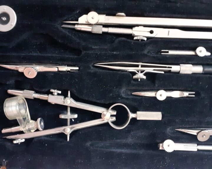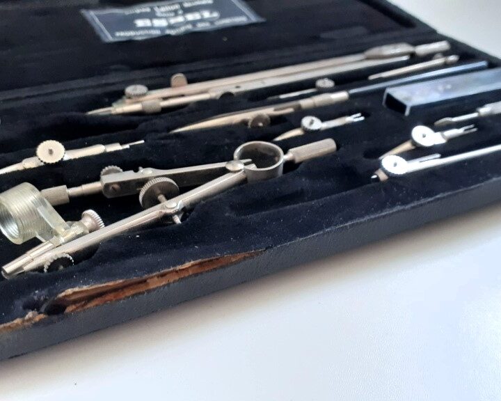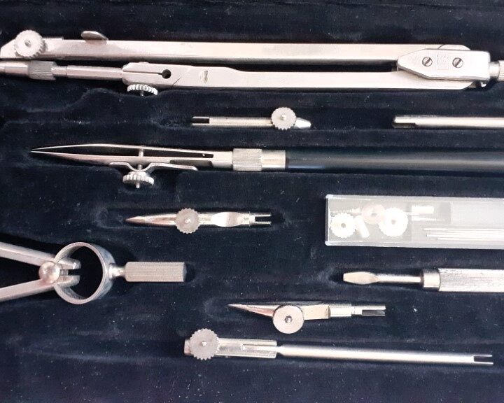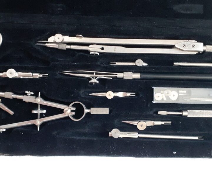 Ensemble compas laiton nickelé série 4 essel. Vendu avec tous les accessoires visibles sur les photos. Le matériel est en très bon état. La boite est abimée au niveau de la fermeture est abimée (visible sur photo de l’annonce). J’ai d’autres matériel de dessin et loisirs créatifs à vendre.