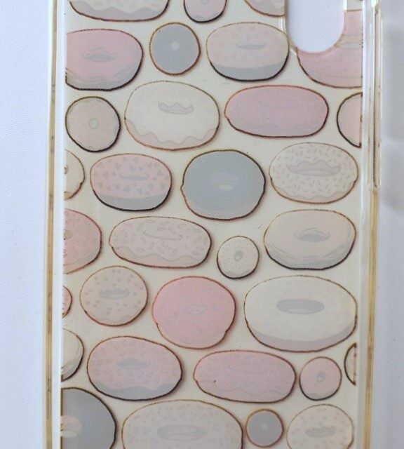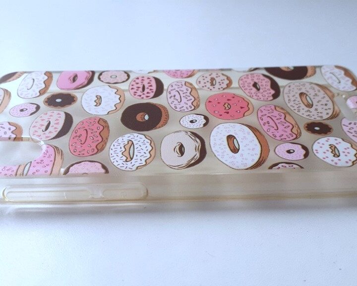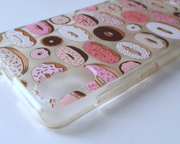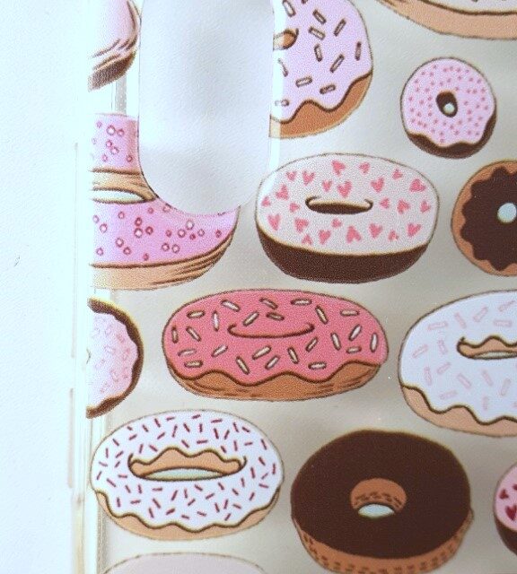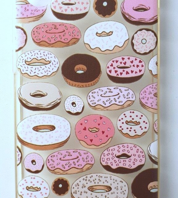 Coque pour téléphone portable Wiko Y60. Coque transparente et motifs donuts. En très bon état, pas de défaut.