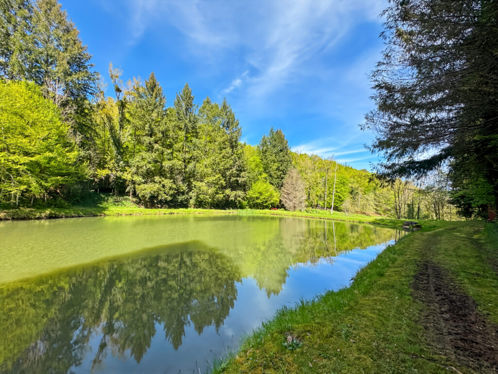 Un étang dédié à la pêche de 3.300 m2, récemment mis aux normes, avec des abords soigneusement entretenus.