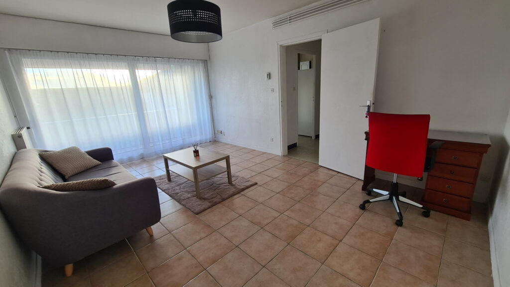 L’agence Pont Cardinal Immobilier vous propose à la location quartier des Rosiers un grand F2 meublé, au 3ème et dernier étage, sans ascenseur, spacieux et lumineux , dans une résidence calme comprenant entrée avec placard, un salon sajour donnant sur balcon, une cuisine équipée, une chambre confortable avec placard, salle de bain, wc. Appartement bien agencé et fonctionnel avec également garage privatif et place de parking extérieure. Proche de toutes commodités pour un quotidien pratique. Chauffage individuel au gaz.
