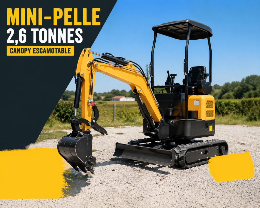 À louer à la journée/plusieurs jours ou week-end Mini-pelle 2,6t canopy (escamotable)À partir de 130 euros ht
