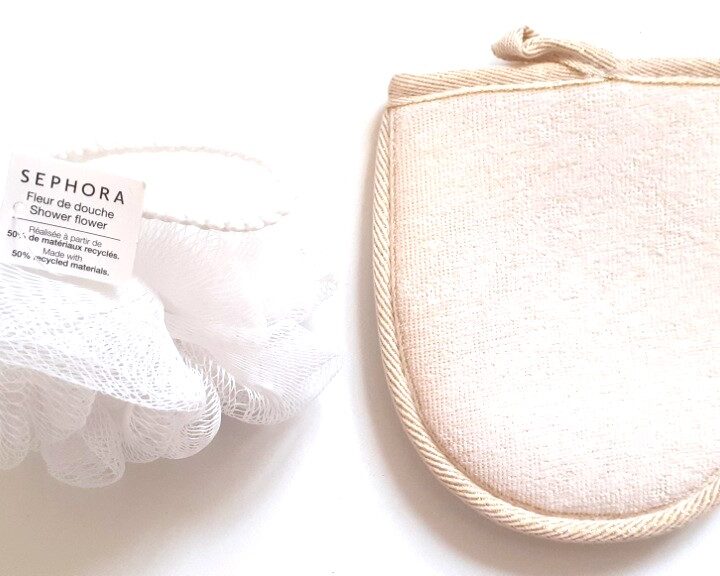 Lot fleur de douche marque Séphora + gant de gommage doux. Les deux sont neufs, en parfait état, et n’ont jamais servis. Taille de la fleur de douche : environ 12cm de diamètre. Taille du gant de gommage : hauteur 14cm – largeur 12,5cm (on peut glisser la main à l’intérieur pour une utilisation pratique).