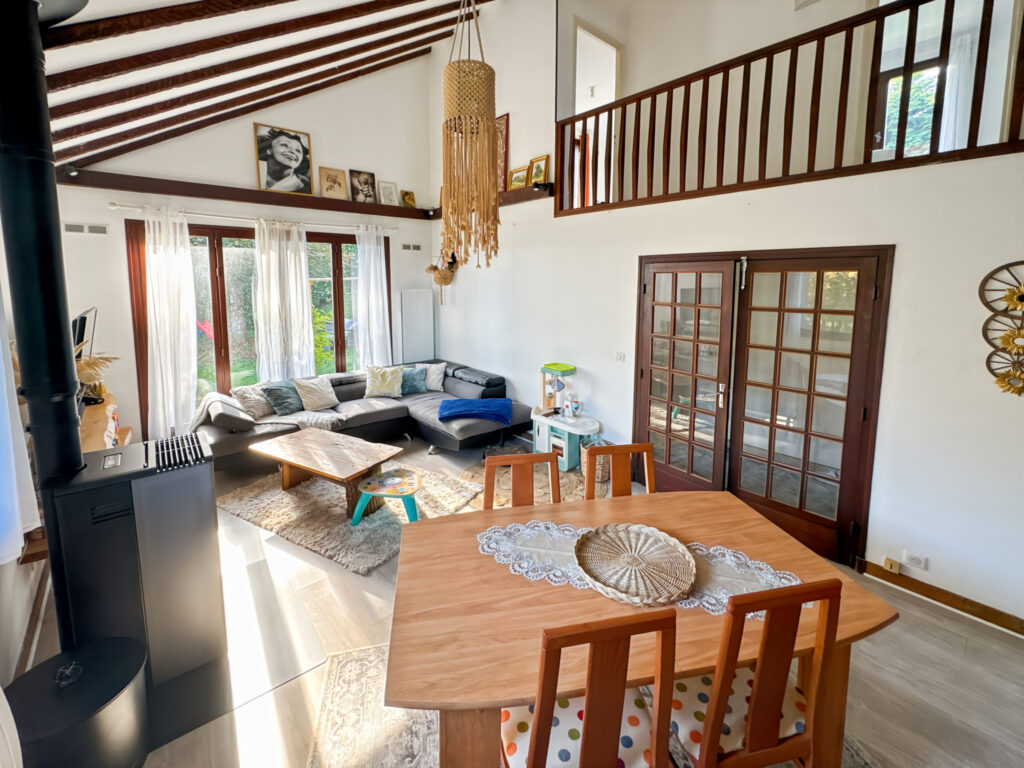 Construction à un étage – Toiture tuiles – Charpente traditionnelle – Menuiseries bois – Double vitrage – Baie vitrée – Chauffage électrique – Poêle à granulés – Tout à l’égout – Jardin – Terrasse – Garage – Cellier.