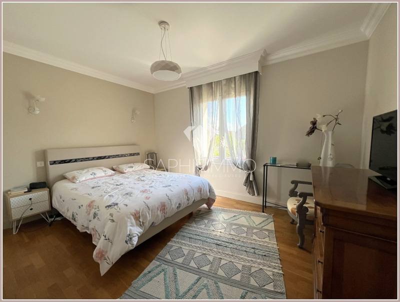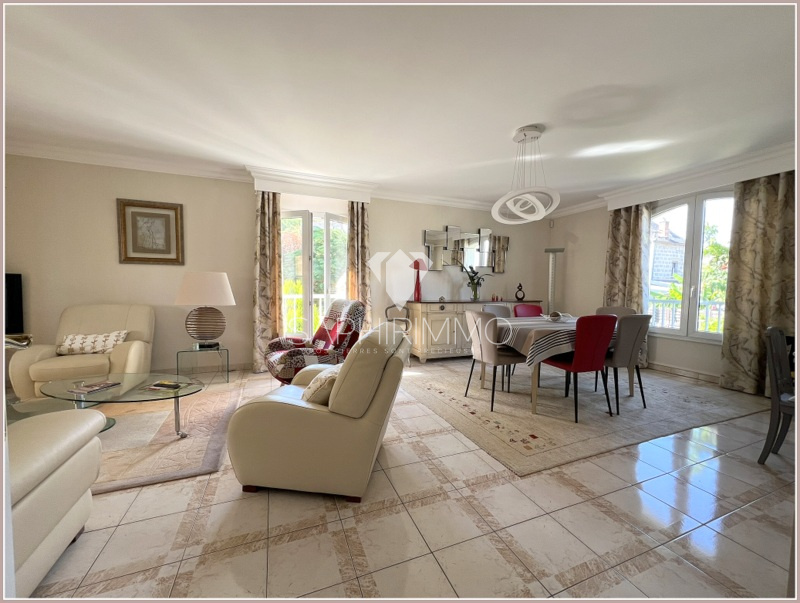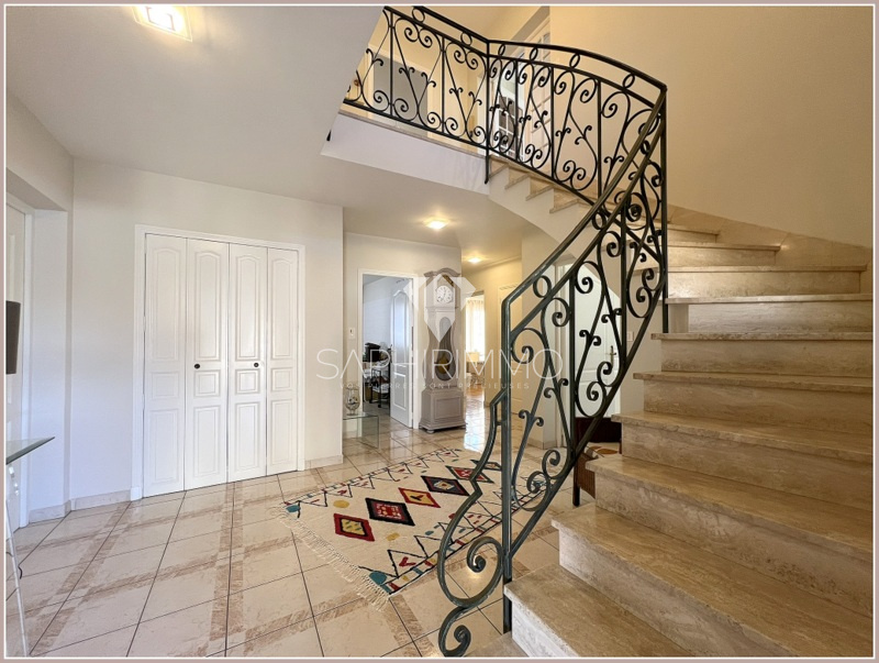– au premier étage : un palier baigné de lumière desservant : un séjour de plus de 40m2 traversant (Est-Ouest) avec accès direct à la terrasse exposée Est, une cuisine indépendante entièrement équipée, avec cellier, et accès direct également à la terrasse, un couloir avec placardsn deux chambres avec placards dont une avec roberie, une salle d’eau avec douche à l’italienne et double vasque, un wc indépendant.