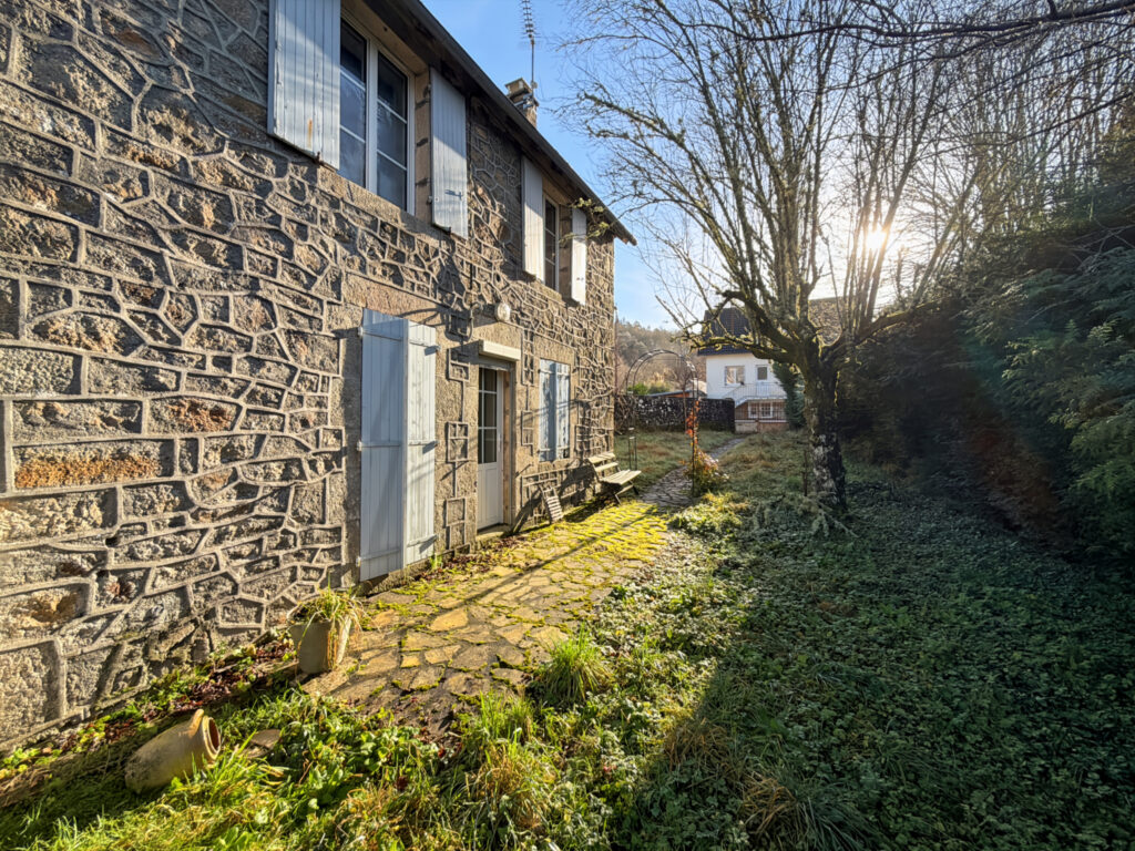 Construction à un étage en pierre – Toiture en ardoises – Charpente traditionnelle – Poutres apparentes – Pierres apparentes – Fenêtres double vitrage – Absence de système de chauffage – Tout-à-l’égout – Jardin.