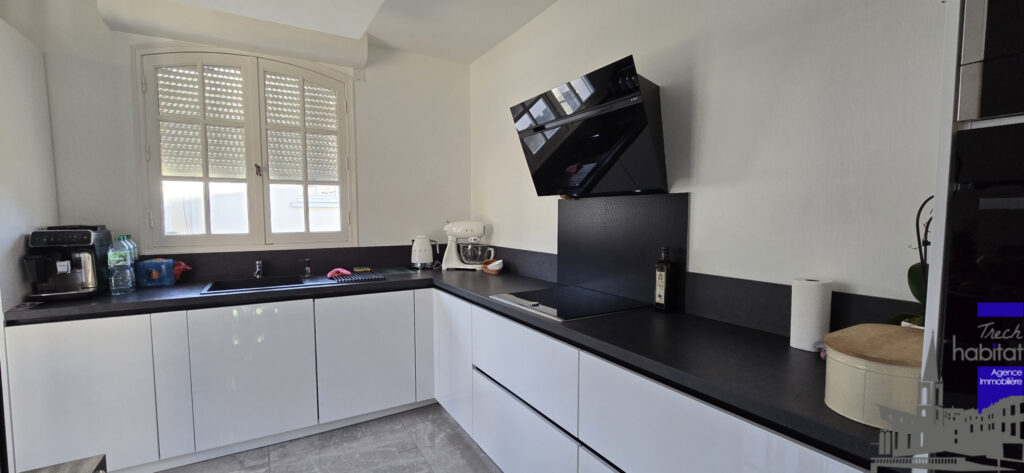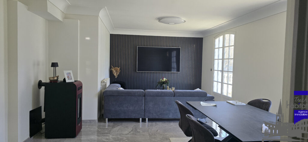Trés jolie maison familiale entièrement rénovée et décorée avec goût.Elle se compose en rez de chaussée d’un grand hall d’entrée, un séjour avec poele à granulés, une cuisine moderne aménagée et équipée, un wc avec lave-mains, 3 chambres dont une avec dressing, une salle de bains avec double vasque, des placards de rangement dans le couloir.Un quatrième chambre à l’étage avec rangement, un grenier.En sous-sol, un grand garage avec porte motorisée pour 2 véhicules.Un bureau, une chaufferie buanderie, un cellier.Parking exterieur, jardin, entièrement clos et sécurisé par un portail éléctrique.Cette maison bénéficie d’un chauffage central gaz de ville, mais également d’une pompe à chaleur.Libre.
