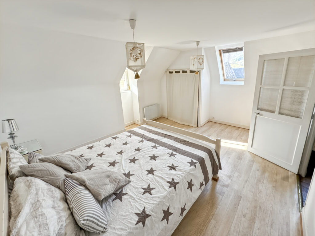 Construction en pierre à deux étages – Toiture en ardoises – Charpente traditionnelle – Poutres apparentes – Fenêtres simple vitrage – Menuiseries bois – Insert à bois – Convecteurs – VMC – Tout-à-l’égout – Jardin.
