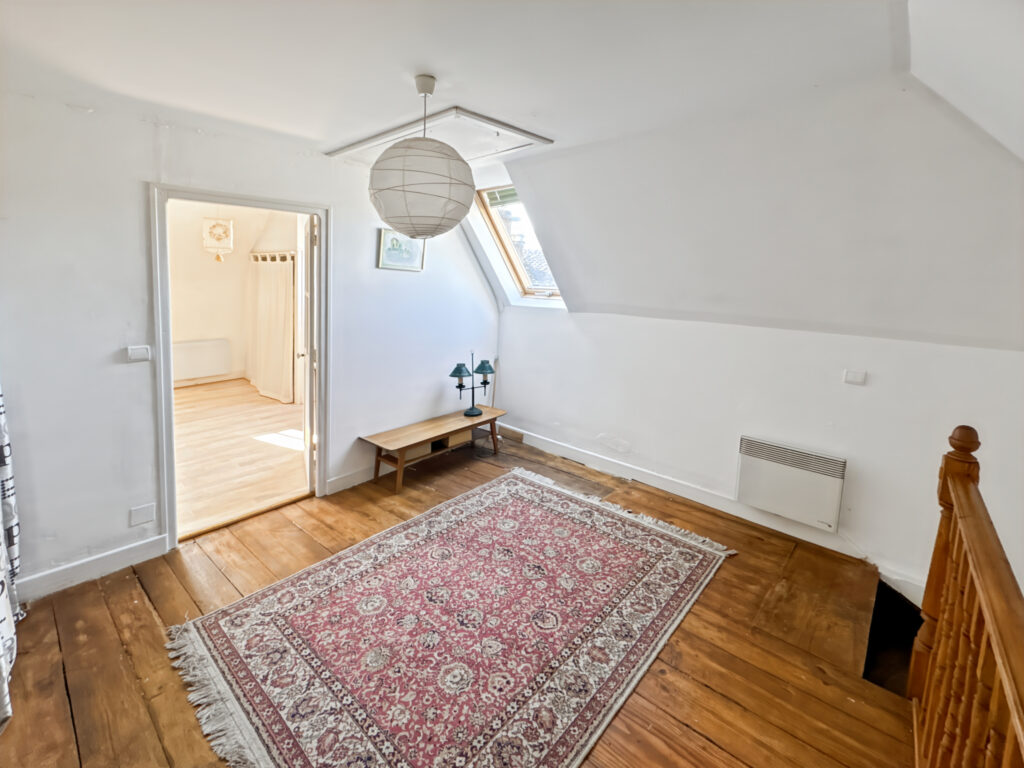 Au premier étage : dégagement couloir, deux chambres et une salle d’eau avec un cabinet d’aisance.