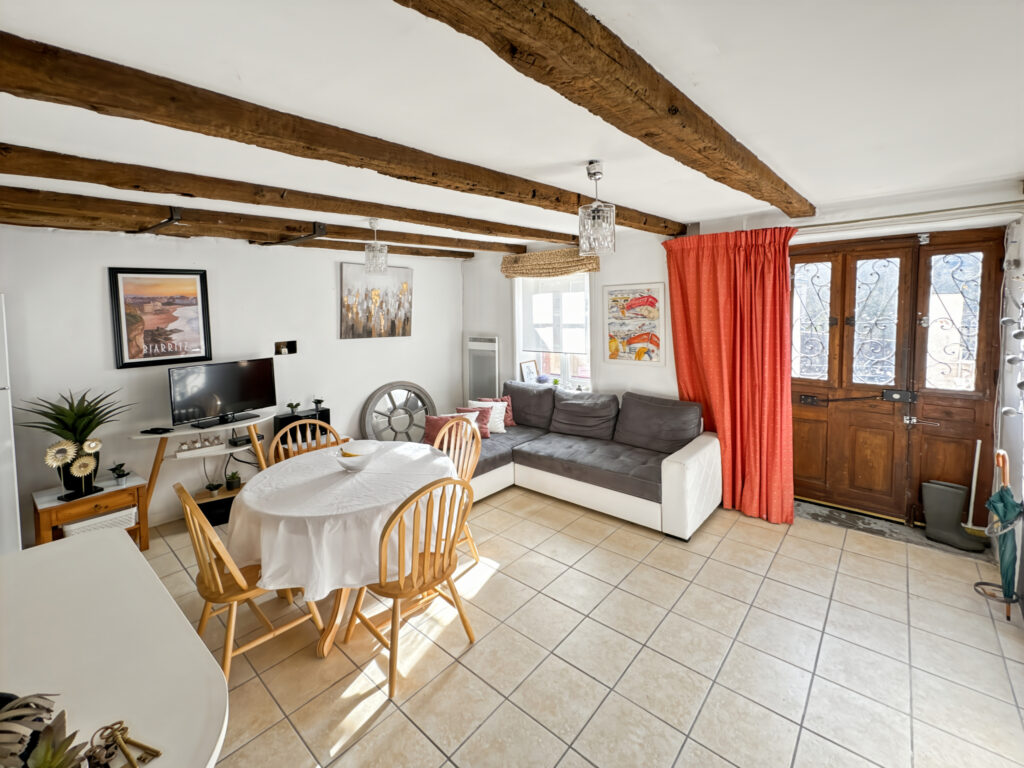 Au rez-de-chaussée : un séjour/salle-à-manger et une cuisine ouverte aménagée et équipée.