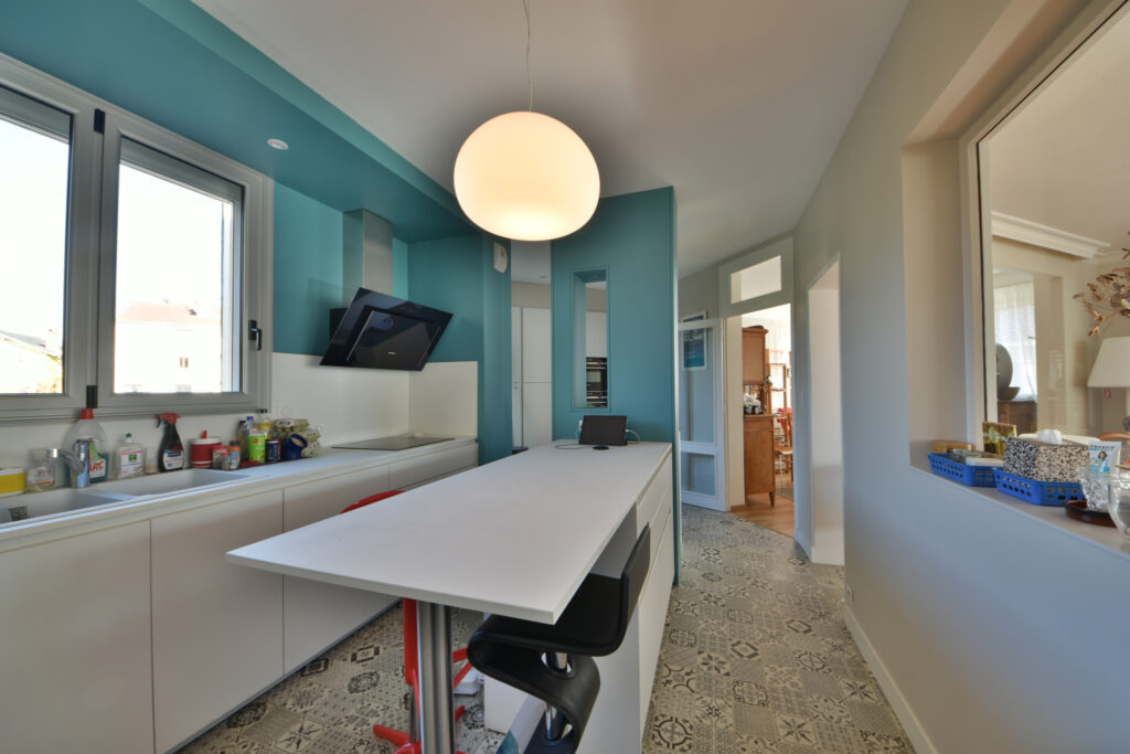Au premier étage , une entrée accueillante dessert un salon-sejour-salle à manger d’environ 50 m2, baigné de lumière, idéal pour recevoir en toute convivialité. La cuisine indépendante, entièrement équipée, allie modernité et fonctionnalité. Un toilette complète ce niveau.