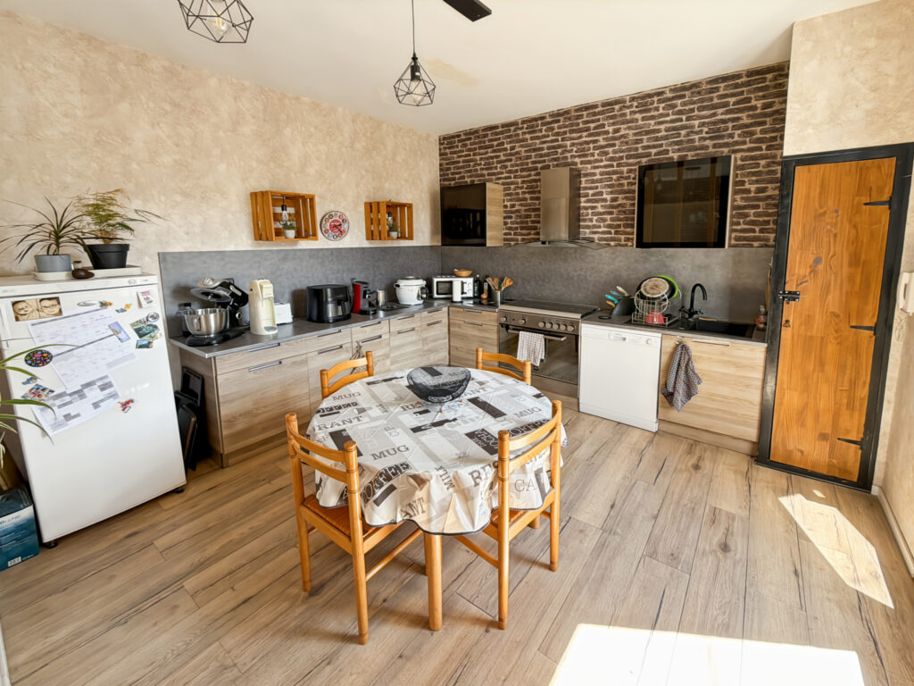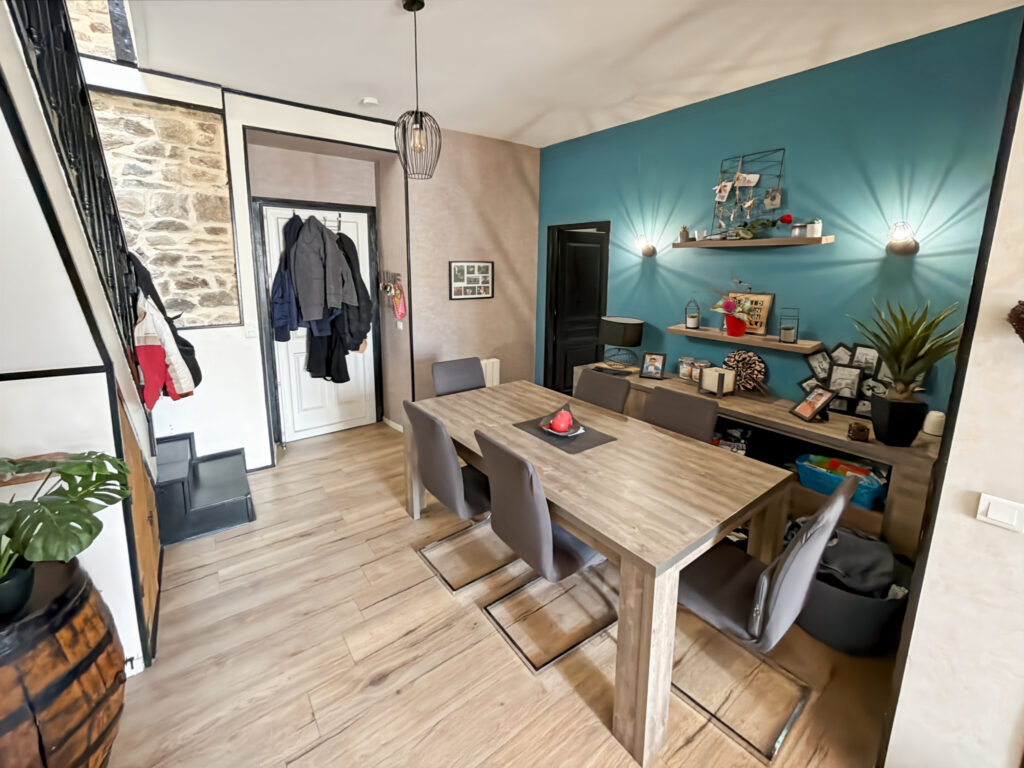 Au premier étage : dégagement couloir, un séjour, une salle-à-manger, une cuisine aménagée et équipée, une salle d’eau, une chambre et un cabinet d’aisance.