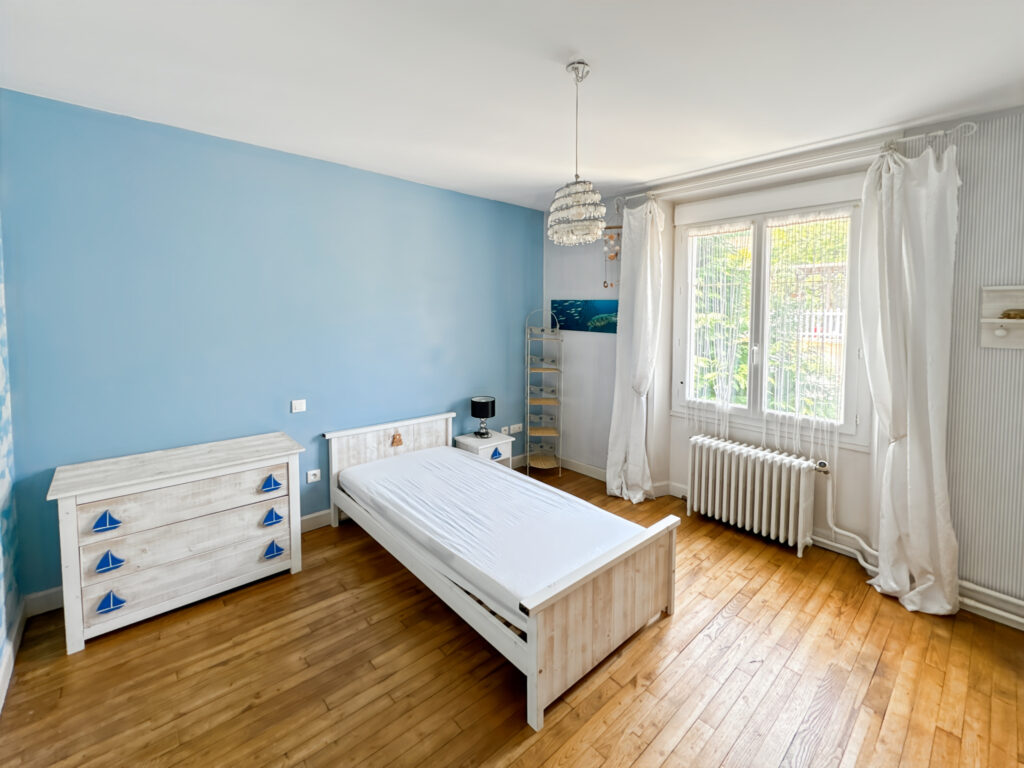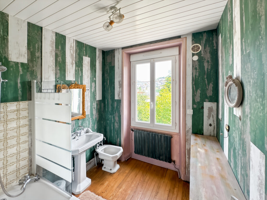 À l’étage : dégagement couloir, deux chambres et une salle d’eau.