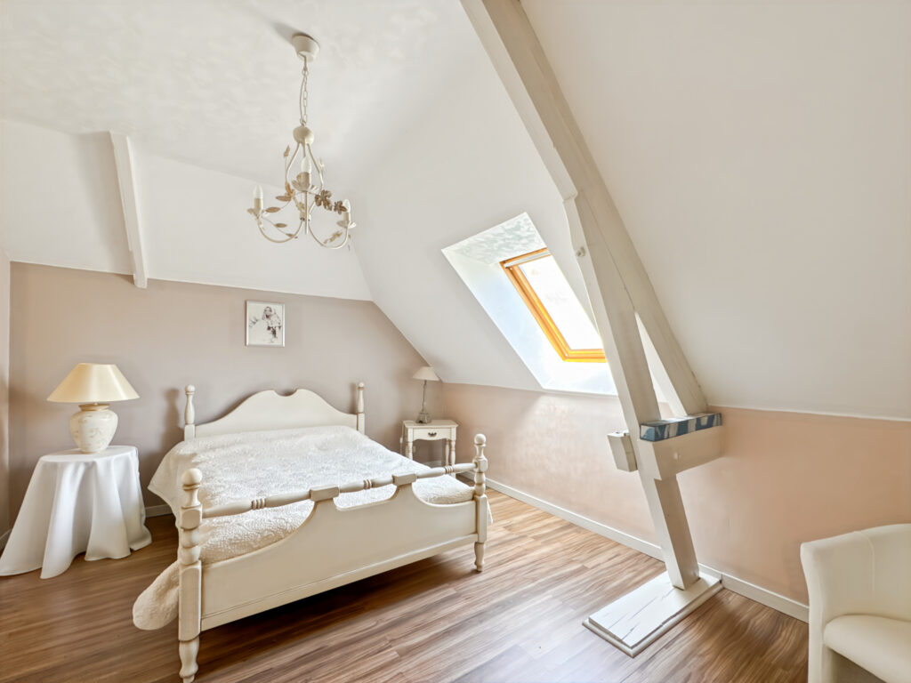Au second étage : dégagement couloir, une chambre, un bureau et une salle de bains avec cabinet d’aisance.