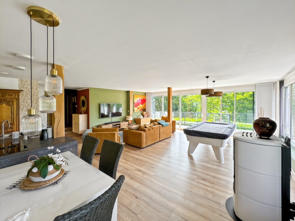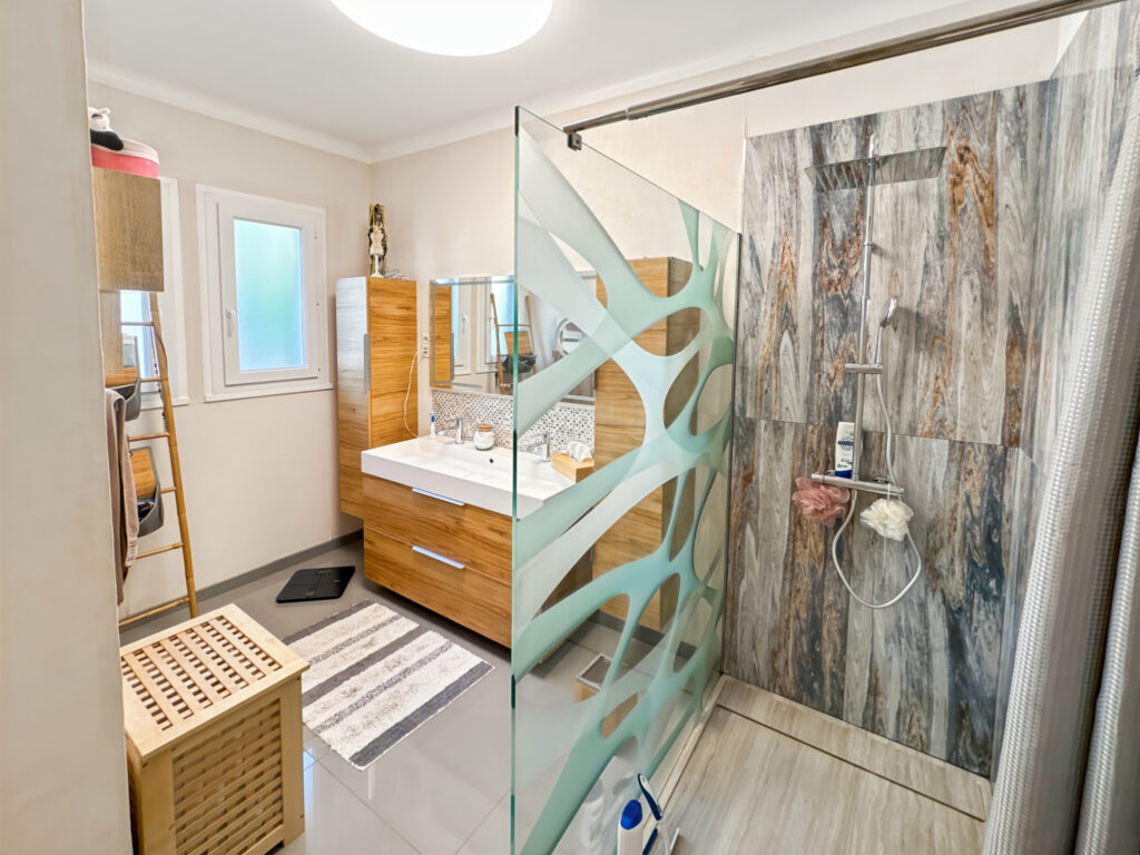 Construction semi-enterrée datant de 1973 – Toiture tuiles – Avant-toits aluminium – Charpente traditionnelle – Combles isolés – Fenêtres double vitrage – Menuiseries aluminium et PVC – Volets roulants électriques et roulants manuels – Pompe à chaleur (2023) – Poêle à granulés (2022) – VMC – Fosse septique – Stationnement – Rangements – Terrain – Balcon – Cave – Fibre optique – Buanderie – Chaufferie – Pergola – Piscine (8×5) au chlore.