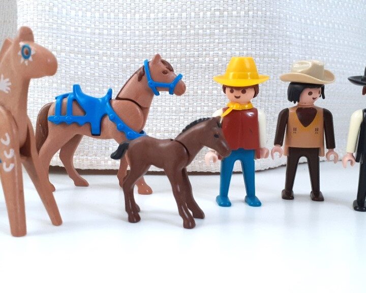 Playmobil lot figurines cow boys. Vendues avec tous les accessoires visibles sur les photos. Certains des bras des bonhommes ne tiennent plus en l’air. Le reste est en très bon état. J’ai d’autres Playmobils à vendre.
