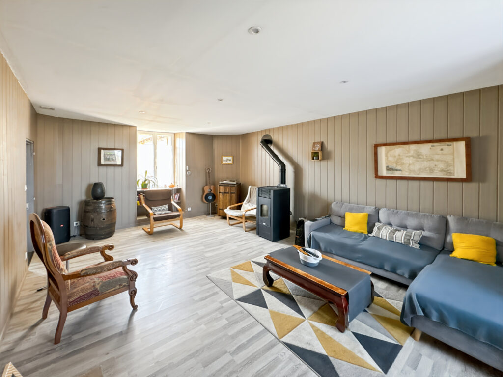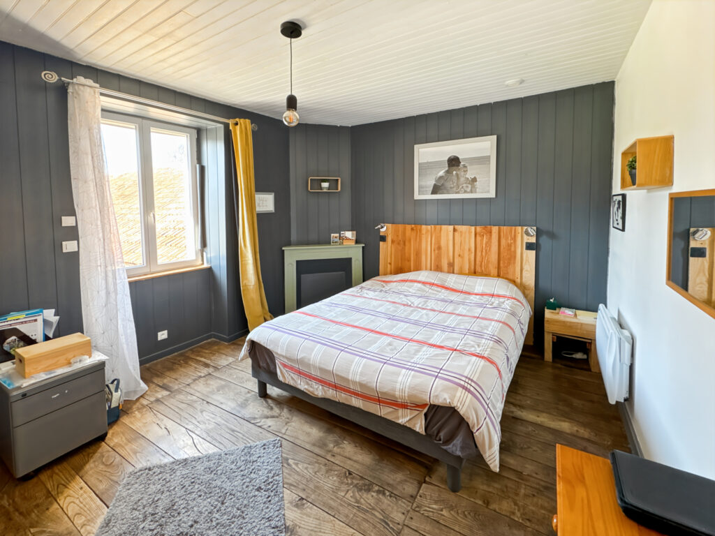 Construction en pierre à deux étages – Toiture en ardoises – Charpente traditionnelle – Isolation intérieure – Fenêtres double vitrage – Fenêtres de toit – Poêle à granulés – Pompe à chaleur – Convecteurs – Ballon d’eau chaude – VMC – Fibre optique – Fosse septique – Cellier – Cave – Atelier – Buanderie – Terrasse – Balcon – Jardin – Grange – Puits – Terrain arboré – Garage.