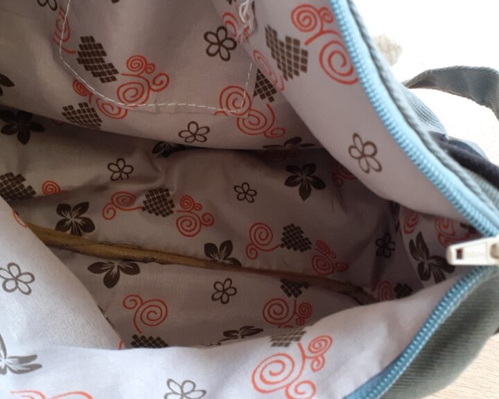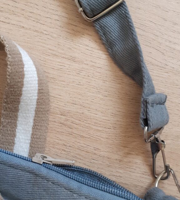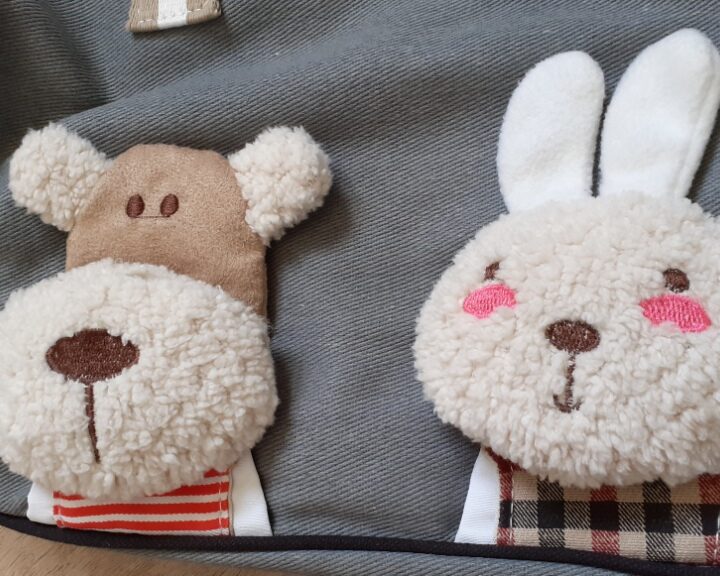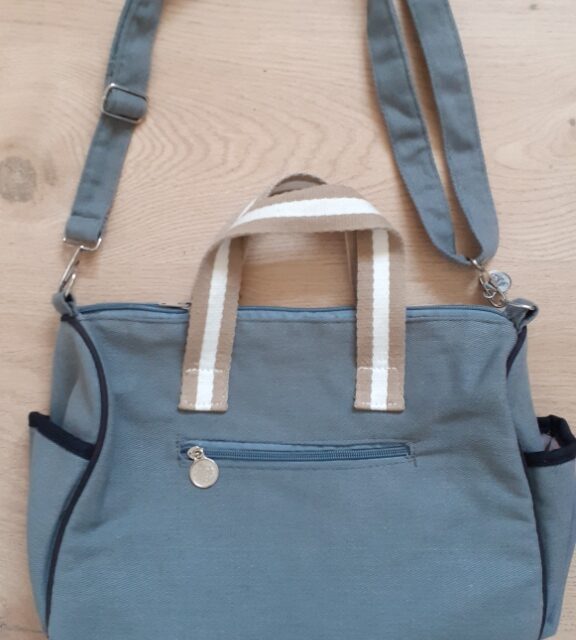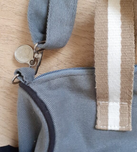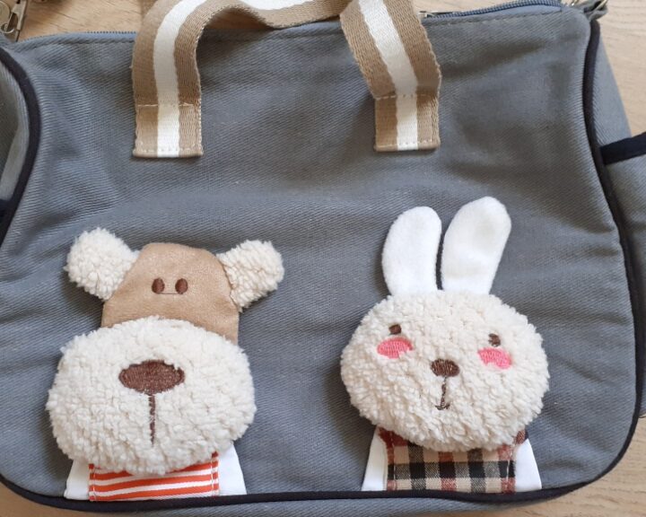 Sac à bandoulière en tissu / coton pour enfant, couleur kaki, avec fermetures éclair et nombreuses poches. Intérieur doublé. Décoration peluches animaux toutes douces sur le devant. La longueur de la bandoulière est réglable. Très jolies finitions et parfaitement propre, sans défaut.